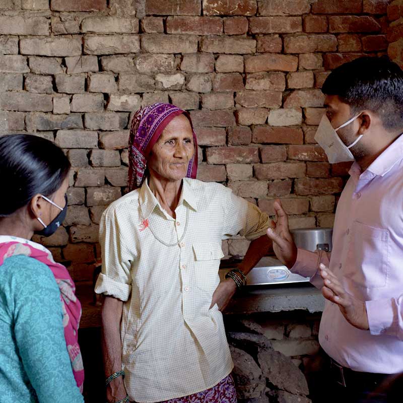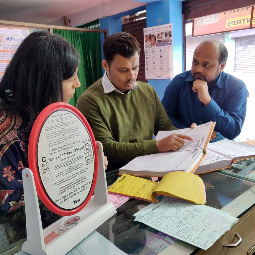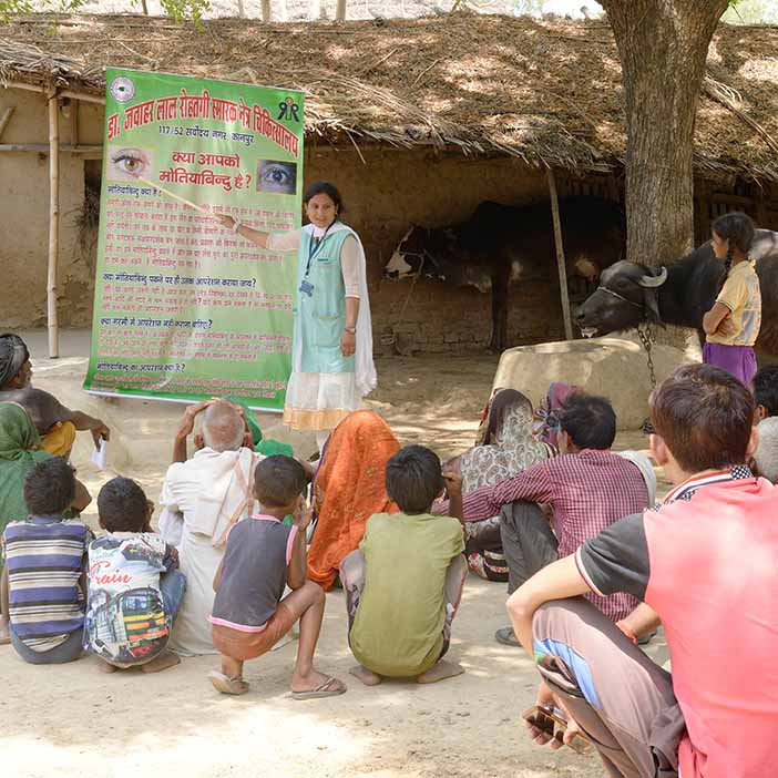 CHWs organize screening camps in centrally located villages. At these outreach camps, staff from our partner hospitals re-examine those who were identified with eye conditions during the door-to-door survey
